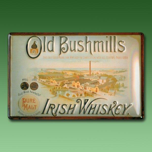 Nostalgie - Reklameschild Bushmills Fabrik, Old Bushmills Irish Whiskey, Pure Malt, Paris 1889