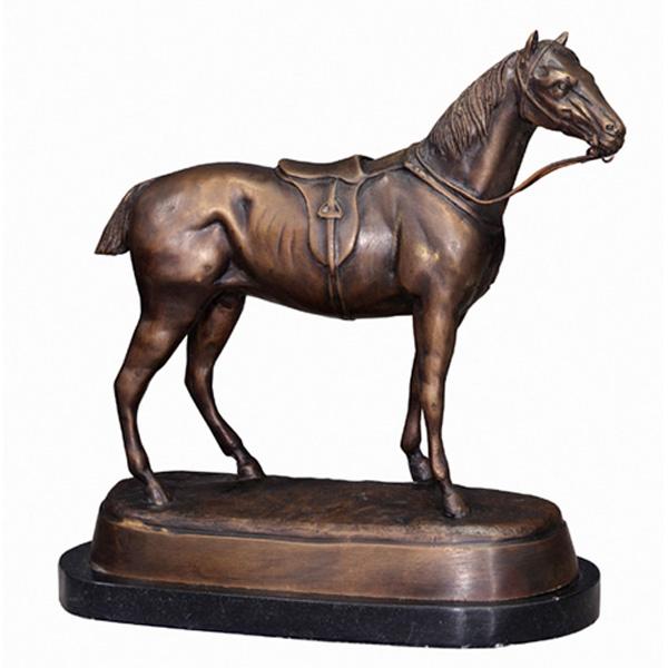 Tier-Plastik Rennpferd mit Sattel in Bronze gegossen, Stehend
