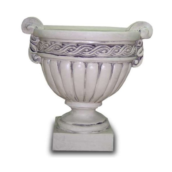 Der klassisch gehaltene Blumenkübel ist mit schönen Mustern verziert.