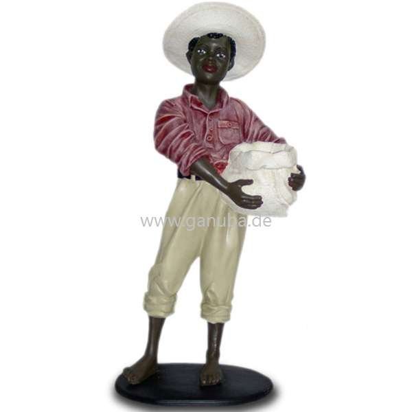 Dekorations - Figur Barfüßiger Junge hält kleinen Sack