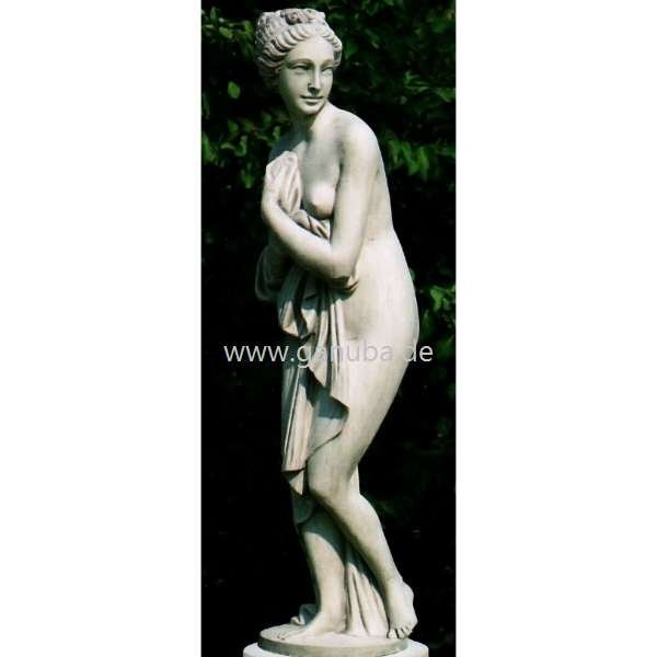 Unsere Gartenfiguren aus weißem Steinguss werden in Italien für höchste Ansprüche in Ländern mit frostigen Wintertemperaturen gefertigt. Die sorgfältige Auswahl des hochwertigen Kunststein-Materials und eine entsprechende Herstellungsmethode sorgen bei sachgerechter Handhabung für eine besondere Frostfestigkeit bzw. Witterungsbeständigkeit. Eine Aufstellung im Wasser sollte ohne zusätzliche Konservierung im Winter vermieden werden. Im Laufe der Zeit bildet sich auf der Oberfläche, je nach Aufstellungsort unterschiedlich stark eine natürliche Patina, die den Produkten einen besonderen Charakter verleiht. Sie können diese Patinabildung beschleunigen, beispielsweise durch Auftragen von Bio-Joghurt, oder durch Einsatz eines handelsüblichen Anti- Algenmittels vorbeugen. Eine eventuell gewünschte Reinigung der Produkte kann mit einer Bürste oder bei Bedarf mit einem Hochdruckreiniger durchgeführt werden. Nach Einsatz eines Hochdruckreinigers empfehlen wir der Oberfläche durch Auftragen von Fassadenfarbe einen zusätzlichen Schutz zu verleihen.