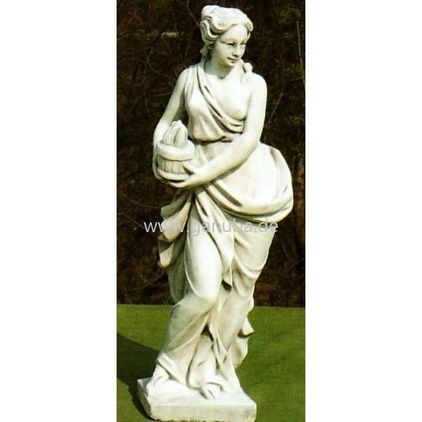 Unsere Gartenfiguren aus weißem Steinguss werden in Italien für höchste Ansprüche in Ländern mit frostigen Wintertemperaturen gefertigt. Die sorgfältige Auswahl des hochwertigen Kunststein-Materials und eine entsprechende Herstellungsmethode sorgen bei sachgerechter Handhabung für eine besondere Frostfestigkeit bzw. Witterungsbeständigkeit. Eine Aufstellung im Wasser sollte ohne zusätzliche Konservierung im Winter vermieden werden. Im Laufe der Zeit bildet sich auf der Oberfläche, je nach Aufstellungsort unterschiedlich stark eine natürliche Patina, die den Produkten einen besonderen Charakter verleiht. Sie können diese Patinabildung beschleunigen, beispielsweise durch Auftragen von Bio-Joghurt, oder durch Einsatz eines handelsüblichen Anti- Algenmittels vorbeugen. Eine eventuell gewünschte Reinigung der Produkte kann mit einer Bürste oder bei Bedarf mit einem Hochdruckreiniger durchgeführt werden. Nach Einsatz eines Hochdruckreinigers empfehlen wir der Oberfläche durch Auftragen von Fassadenfarbe einen zusätzlichen Schutz zu verleihen.