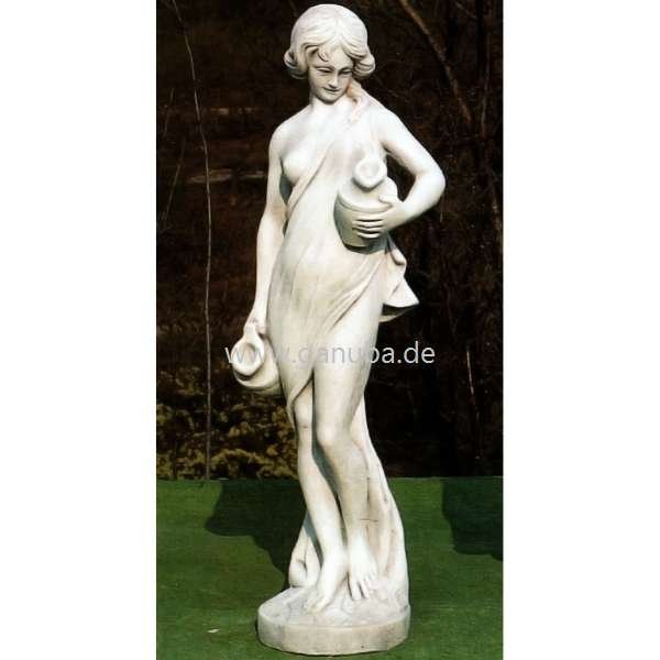 Steinfigur - Wasserträgerin mittel weiße Gartenfigur aus Steinguss