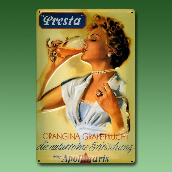 Nostalgieschild - Alkoholfreie Getränke "Presta Apollonaris Orangina Grapefruit "